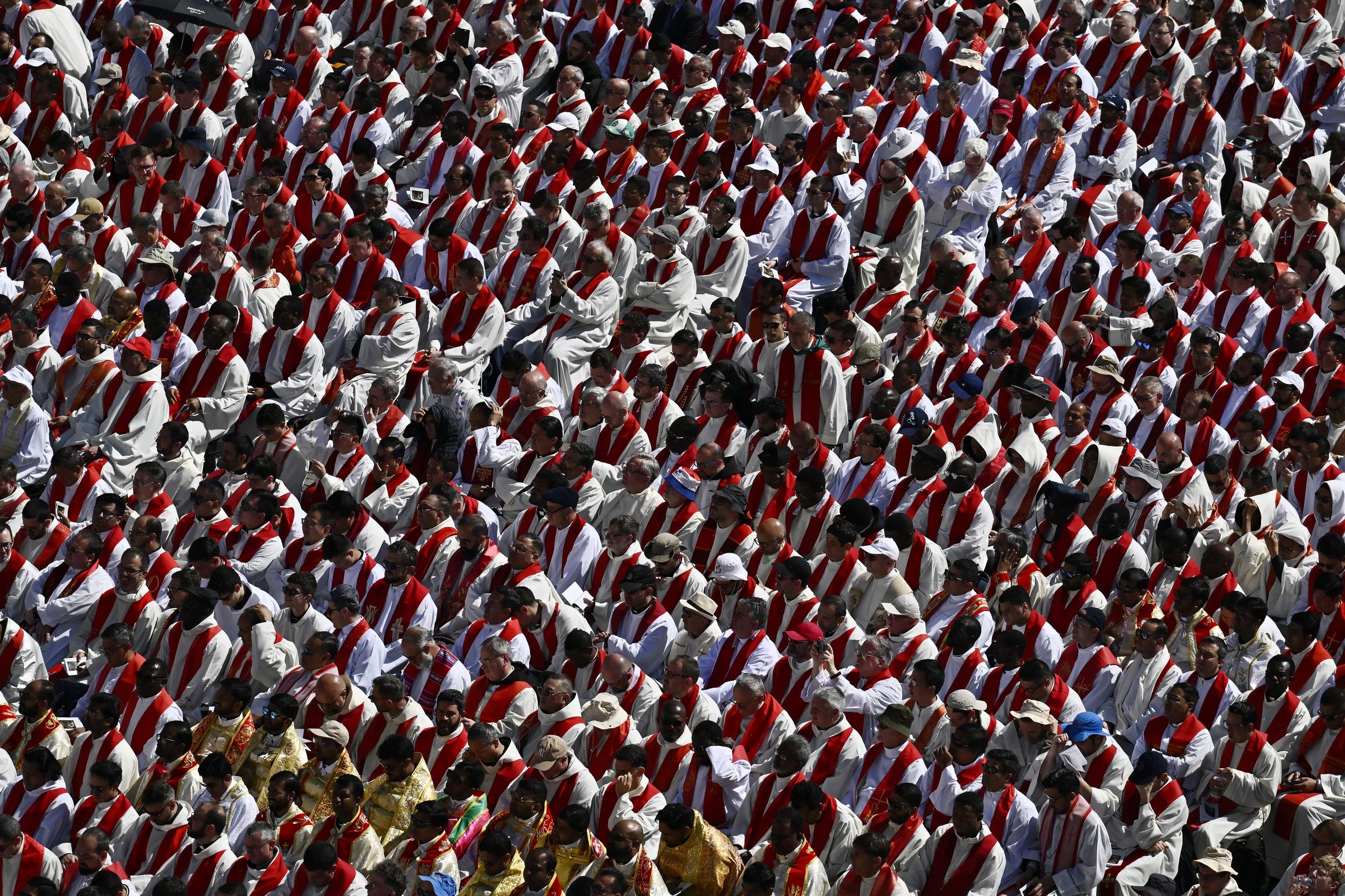 Des membres du clergé assistent aux funérailles du pape François sur la place Saint-Pierre, le 26 avril 2025 | Source : Getty Images