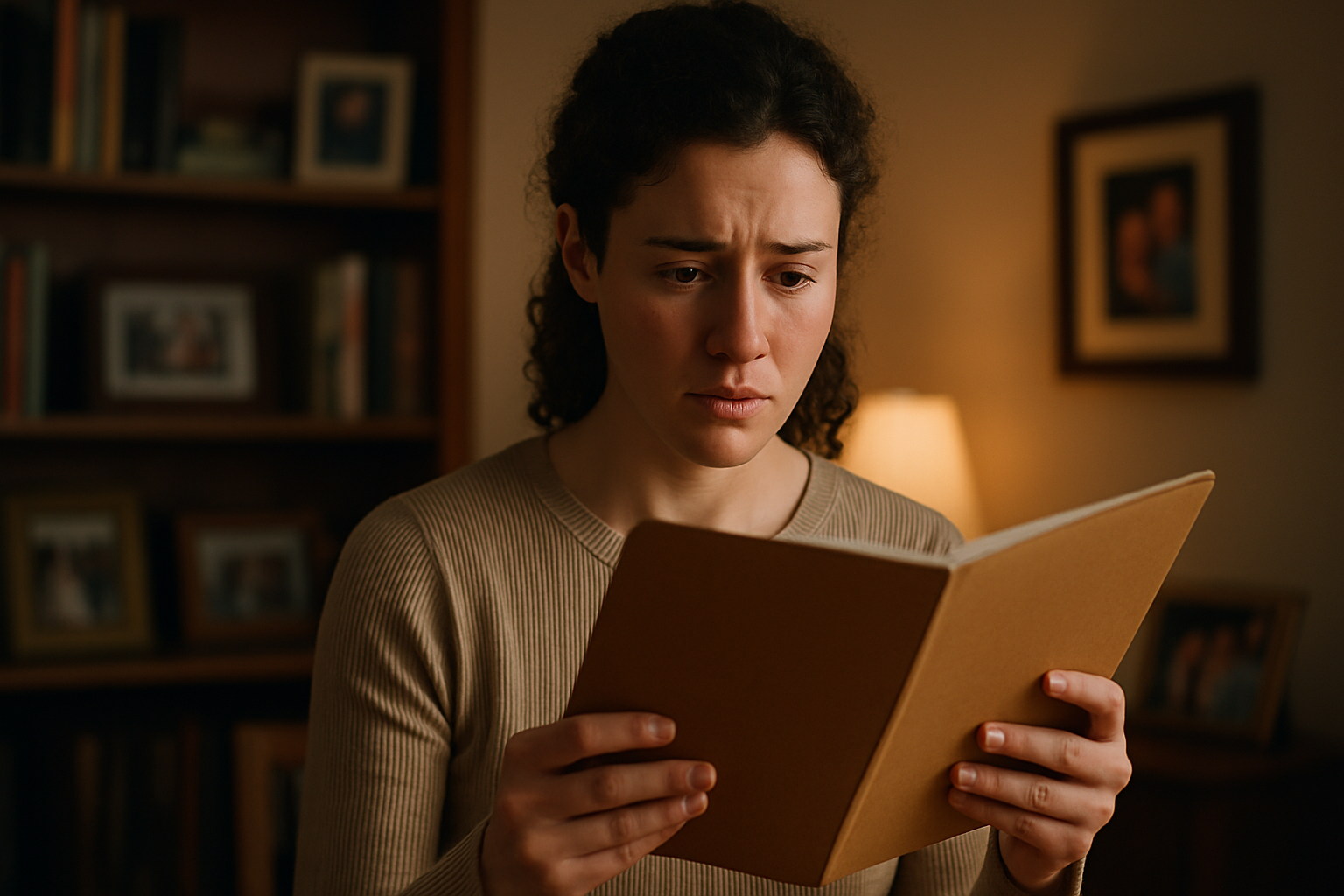 La pièce était silencieuse, à l'exception du bruissement du papier et du son lent de sa respiration qui devenait irrégulière. Son visage a changé. Sa lèvre inférieure a tremblé. Puis elle a levé les yeux, des larmes se formant rapidement.