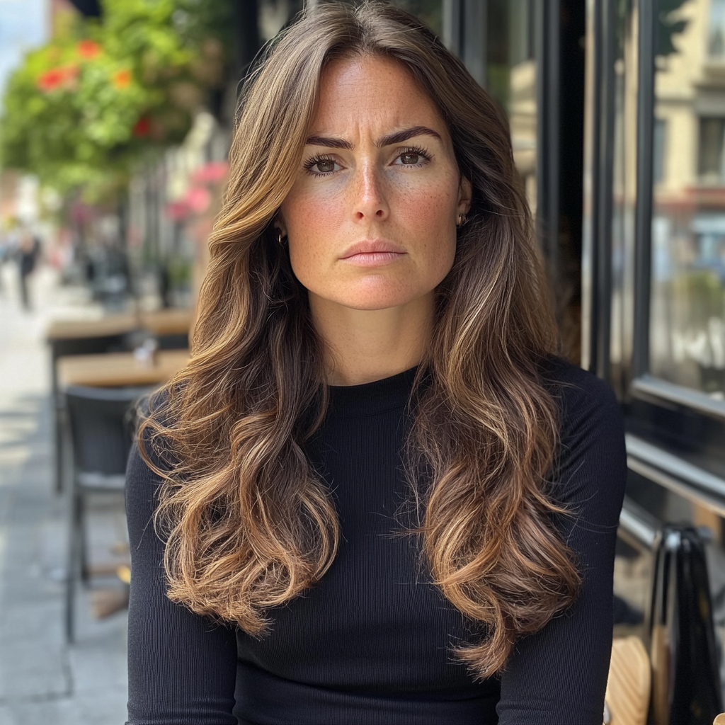 Une femme debout à l'extérieur d'un bistrot | Source : Midjourney