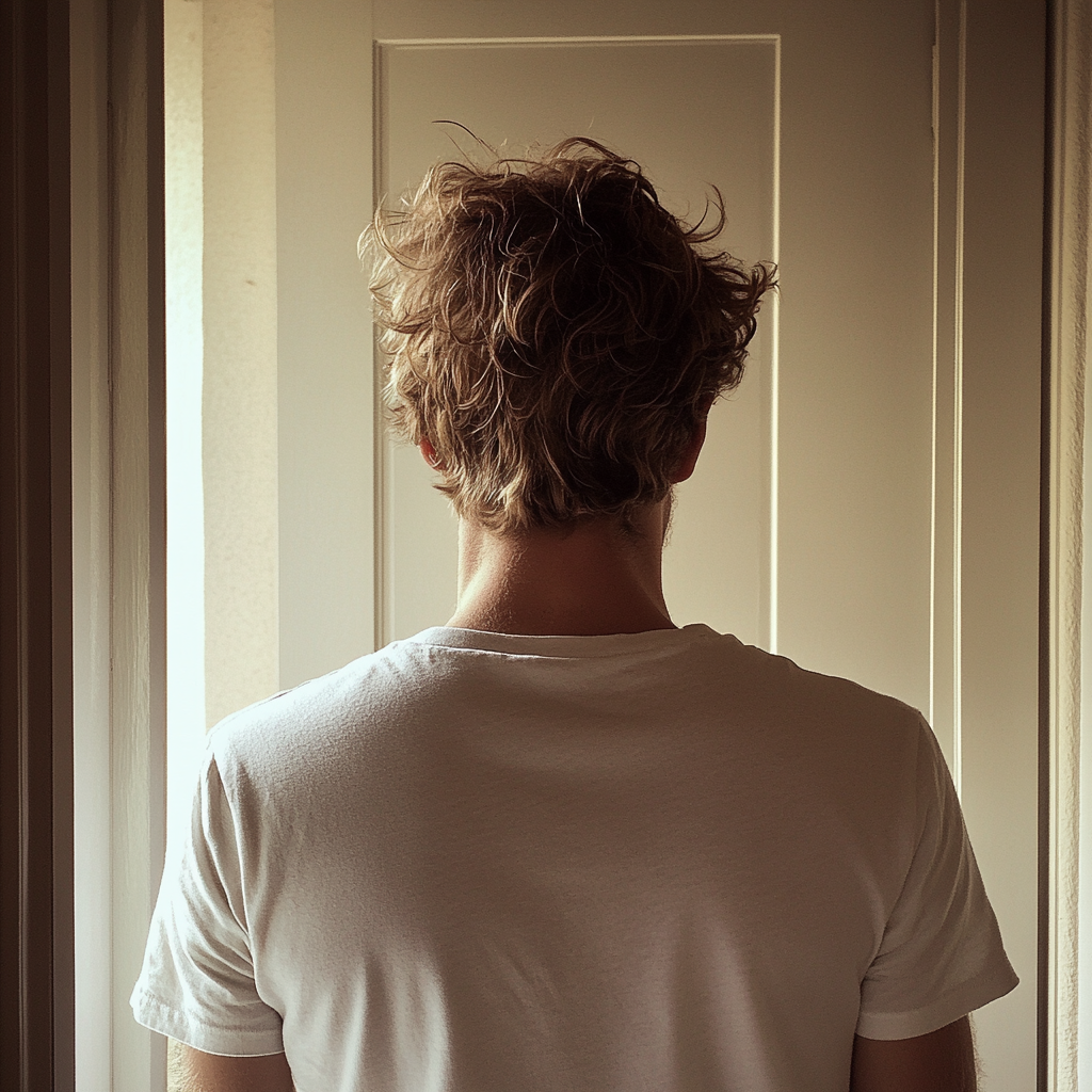 Un homme debout devant une porte d'entrée | Source : Midjourney