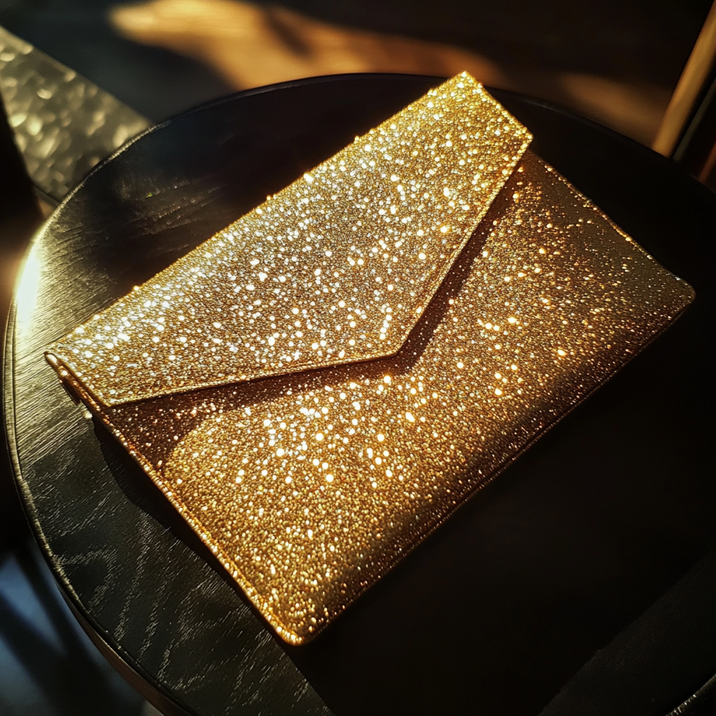 Une pochette dorée sur une table | Source : Midjourney