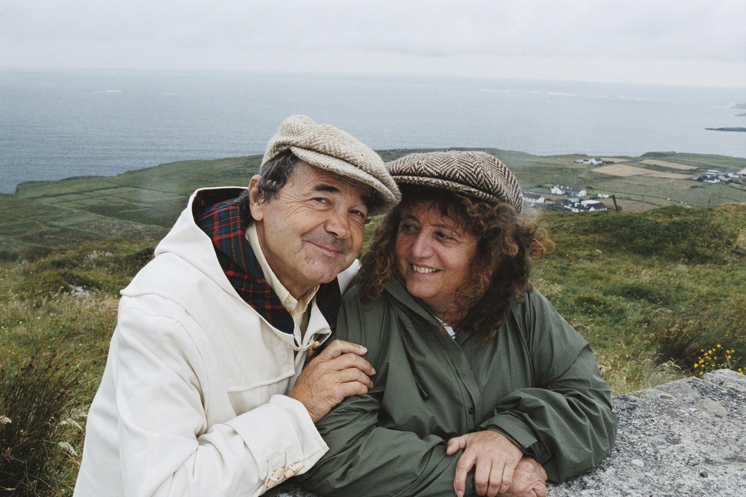 Le chanteur français Pierre Perret avec son épouse Rebecca lors de leur voyage dans le Connemara I Source : Getty Images
