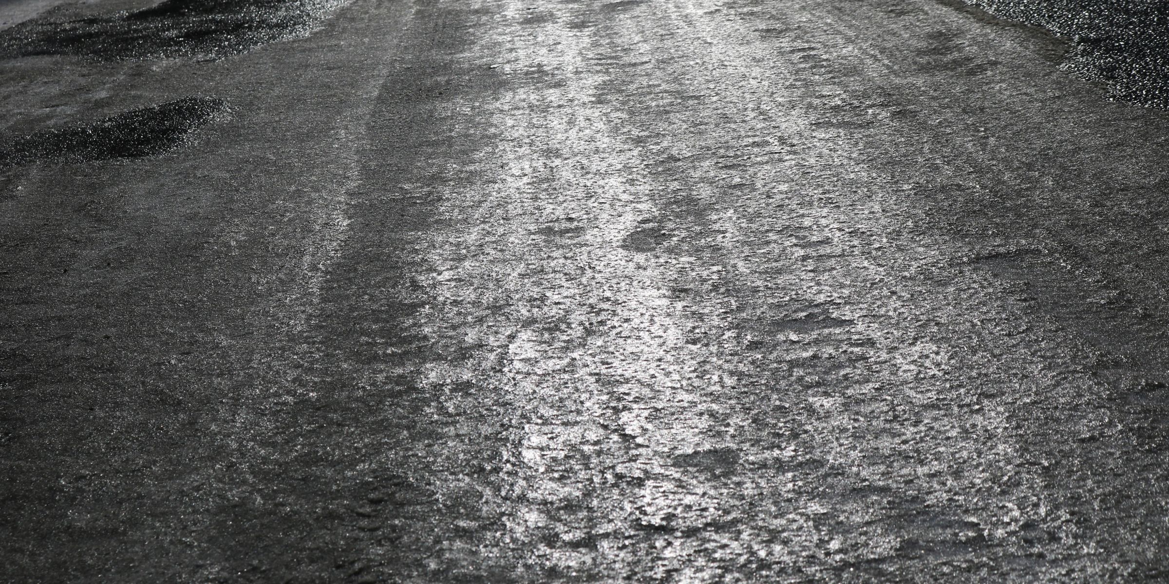 Pas une tache ou un endroit glissant, mais une couche épaisse et vitreuse qui s'étendait de sa porte jusqu'au trottoir.