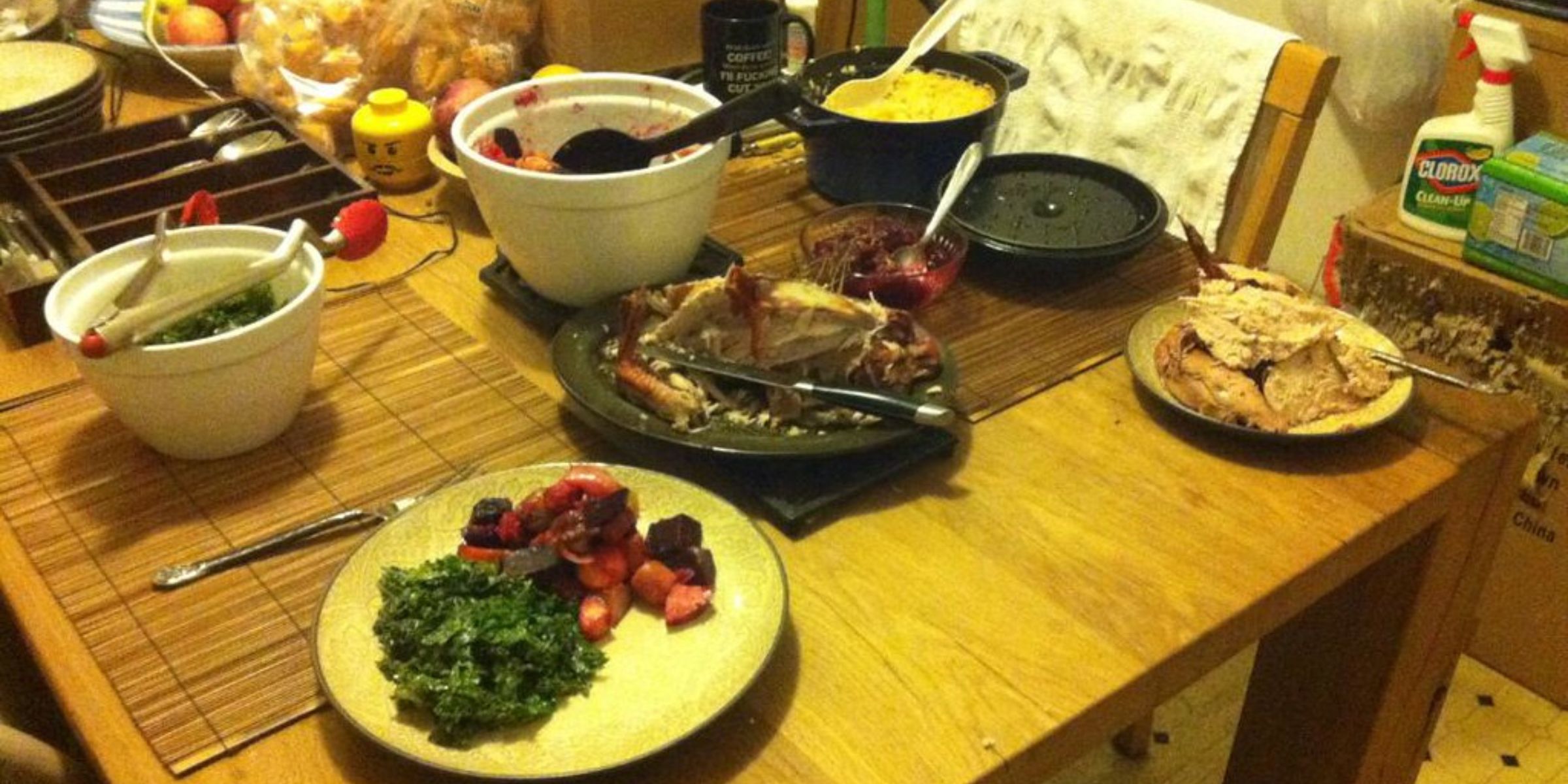 Au dîner, elle a fini son assiette, puis a soigneusement essuyé sa place à table.