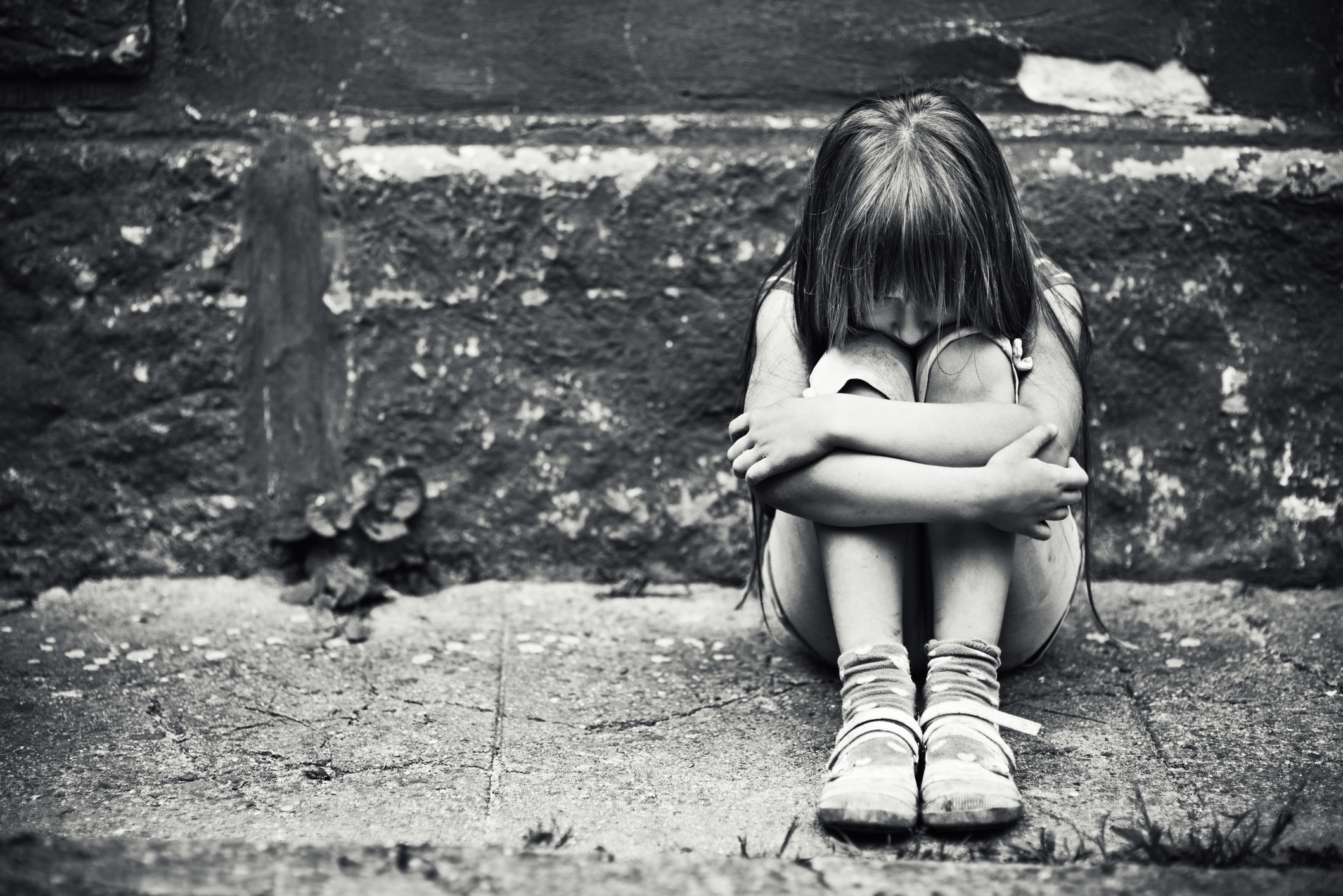Une petite fille en pleurs, assise par terre, se couvrant le visage I Photo d'illustration I Source : Getty Images